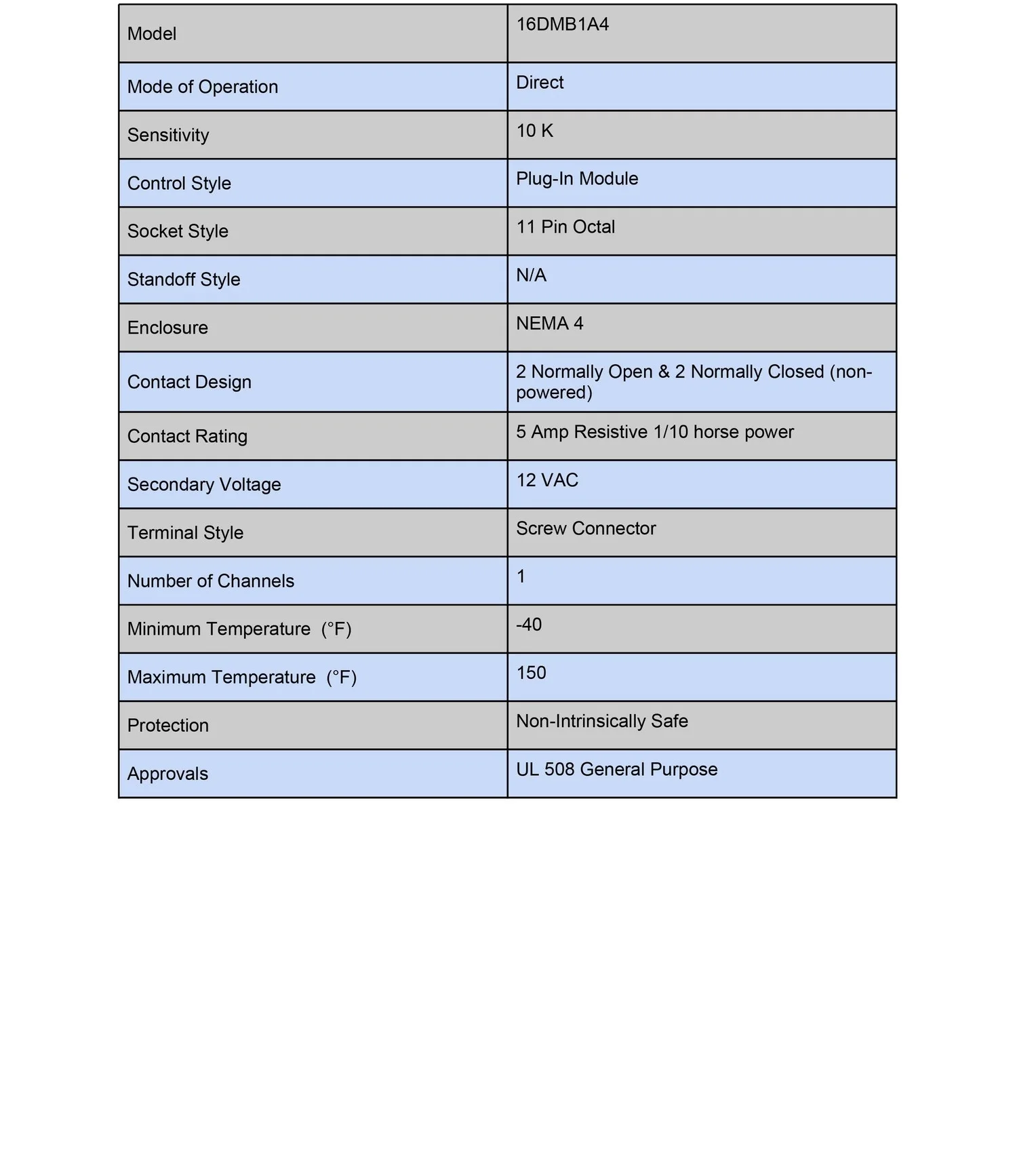 The Series 16DM Controls are designed for either differential or single-level service. U.L. “Motor Controller” listing. Featuring a sensitivity of up to 1 million ohm/cm, DPDT load contacts (eliminating the need for slave relays), 11 pin plugs and an octal socket with screw-type connections make the unit easy to install and service, while requiring little panel space.