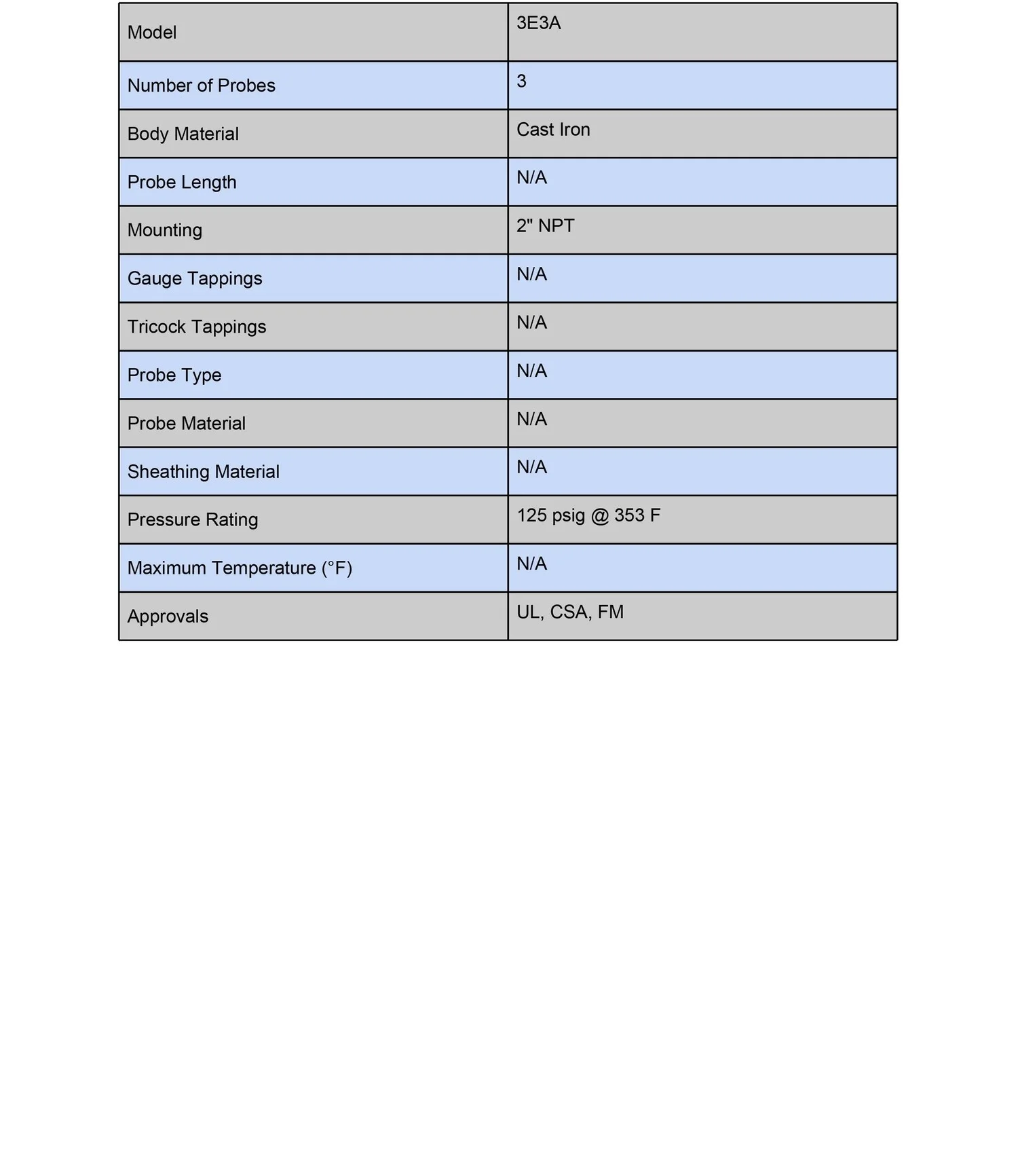 Series 3E fittings are cast metal, pressure-tight assemblies capable of handling 1-7 probes. Attachment to vessels is accomplished with external pipe threading. 3E Fittings require the use of 3R rigid, or 3W wire suspended electrodes.